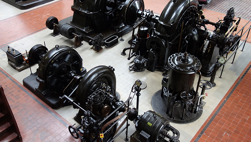 Nach der Mittagspause ging es weiter zur Power-Station des RWEs. Dieses Kraftwerk aus dem Jahr 1904/1905 in Heimbach ist ein Museum, welches noch in Betrieb ist. Es war seinerzeit mit einer Leistung von 12000 KW das größte Speicherkraftwerk Europas. Es sind noch die alten Messingarmaturen mit zwei Turbinen zusehen. Über einen 2.700 Meter langen Stollen mit einem Gefälle von 110 Metern wird es von der Urfttalsperre gespeist, diese Wassermenge durchströmte 8 Turbinen. Heute sind es nur noch zwei neue Turbinen, die im Verbundnetz des RWE im Jahr 25 Mio KWH einspeisen. In Nebenräumen sind elektrische Geräte von Beginn des 20. Jahrhunderts ausgestellt. Alles historische Elektrogeräte. Eine tolle Zeitreise für uns alle in unsere Kindheit.