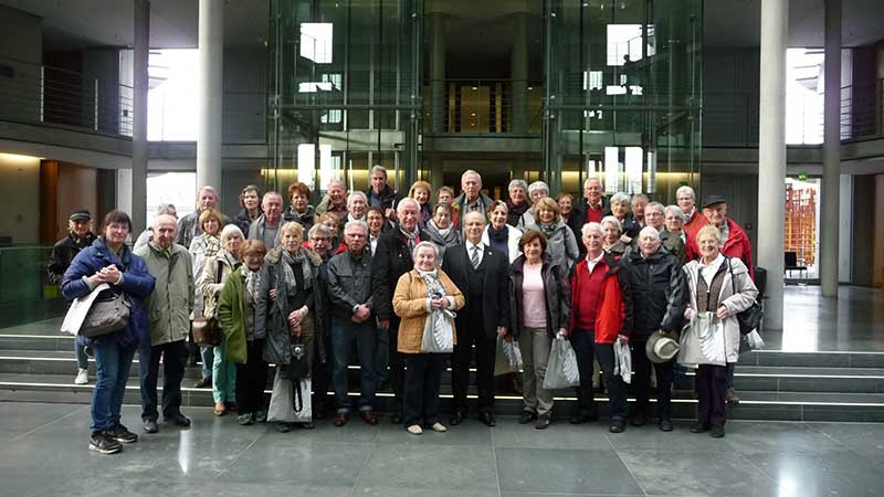 In Potsdam besuchten wir u.a. das Grab vom Alten Fritz, der dort mit seinen Hunden beerdigt ist. Das Holländische Viertel in Potsdam ist sehr malerisch, ebenso die Villengegend. Wir besuchten den Reichstag, stiegen durch die Glaskuppel nach oben und hatten einen herrlichen Blick über Berlin. Der Abgeordnete für den Erftkreis, Herr Dr. Kippels hatte ein wenig Zeit für uns und erzählte etwas über seine Arbeit im Bundestag. Den großen Plenarsaal konnten wir leider nicht besichtigen, da dort gerade eine Abstimmung stattfand.