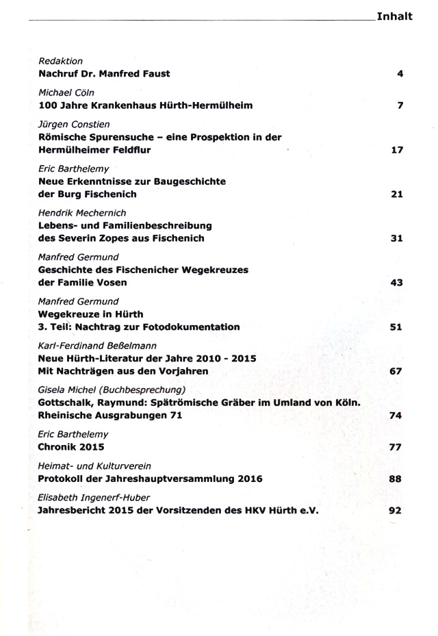 Einige typische Themenbereiche in den jüngeren Ausgaben der Hürther Beiträge (ISSN 1868-4351):